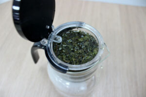 W pudełku z herbatą zostało trochę oolongu, około 10 g. Wysypaliśmy resztki do pojemnika do zaparzania herbaty