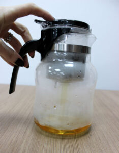 3. Po 10-20 sekundach naciśnij przycisk na pokrywce. Zaparzanie spłynie do zewnętrznego pojemnika.