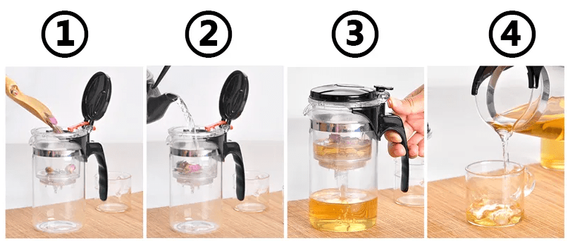Dzięki innowacyjnemu mechanizmowi z jednym przyciskiem, możesz przygotować aromatyczny napar tak, jak podczas tradycyjnej ceremonii, ale nawet 10 razy szybciej i wygodniej. To doskonałe rozwiązanie dla osób, które cenią jakość i praktyczność (zobacz zdjęciową instrukcję parzenia herbaty w zaparzaczu)